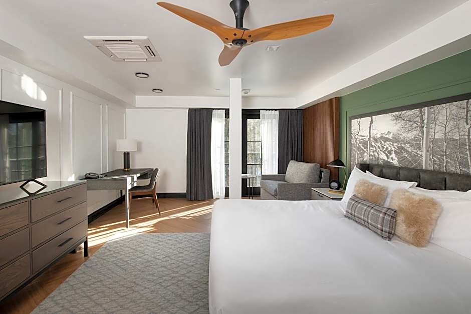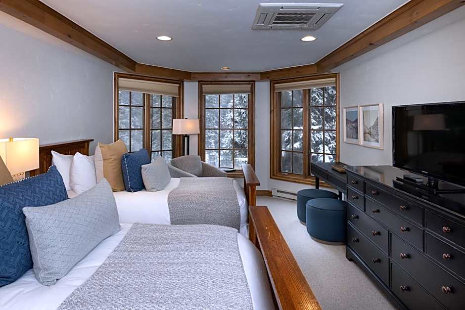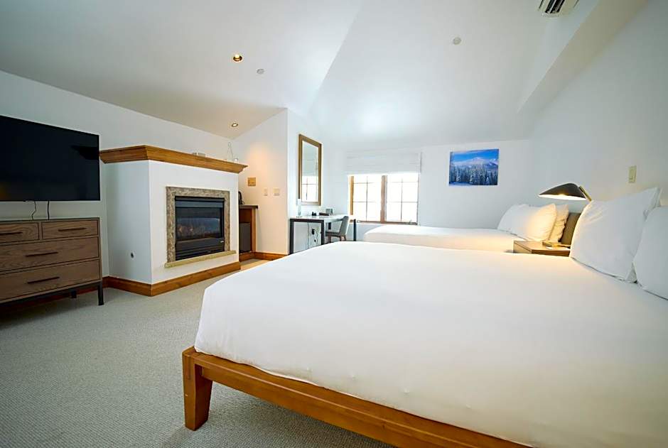 Featuring a gas fireplace, this room provides heated bathroom floors and down bedding. Bathrobes, an iPod docking station and a flat-screen cable TV are provided.